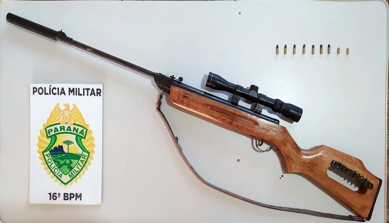 Na tarde de segunda-feira (24), depois de receber uma denuncia, a Polícia Militar realizou uma abordagem na localidade do Despraiado em Candoi, no Paraná, e prendeu um homem de 57 anos. Durante a abordagem, os policiais encontraram com o indivíduo uma espingarda calibre 22 equipada com silenciador e luneta, além de 11 munições calibre 22, sendo duas delas já deflagradas.
